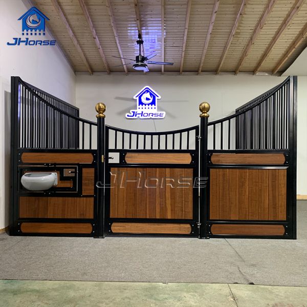 As a leading producer of equestrian facilities, we offer superior barn elements such as this high-end Bamboo Front Grille for horse stalls featuring a built-in feeding mechanism.